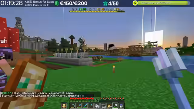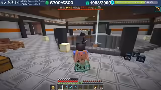 01:40:47Nach einem kurzen Check auf dem Community-Server macht sich der Streamer auf den Weg, um die Bauprojekte der Spieler zu erkunden. Er ist beeindruckt vom 'Shopping District', den die Zuschauer gebaut haben, der den offiziellen Server in den Schatten stellt. Er zeigt verschiedene Läden, darunter einen mit Raketen, Froglights und Netherite, und skizziert die Idee für ein Shop-Analytics-System, um Handelsvolumen und Highscores zu verfolgen. Die Erkundung führt auch zu beeindruckenden Spielerbasen wie einer Unterwasserlagerung und einer Bambusfarm.