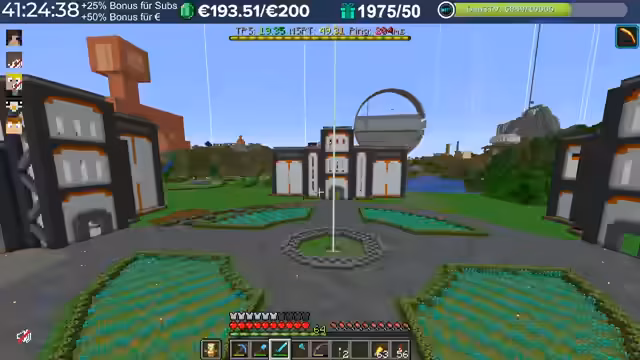 03:14:53Ein zentrales Bauprojekt, die Errichtung einer Glas-Kuppel, wird vorangetrieben. Der Streamer stellt den Fortschritt vor, teilt Materialstatistiken wie die benötigte Glasmenge für einen Ring und sucht nach effizienten Wegen zur Beschaffung weiterer Ressourcen. Dies demonstriert das langfristige Engagement und die strategische Planung im Spiel.