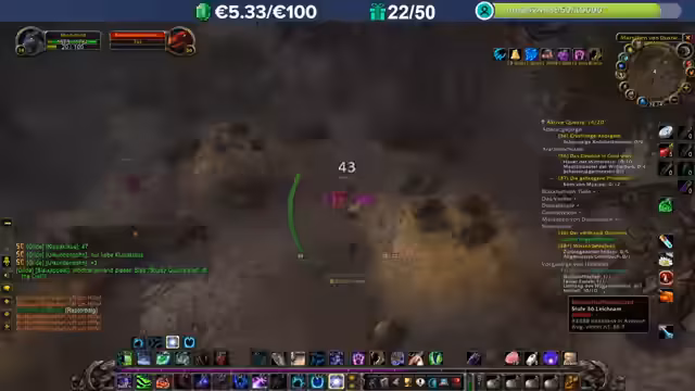 00:03:55Der Stream beginnt mit dem Fokus auf Level 37 des Nachtelfen-Druiden. Das Hauptziel ist es, pro Stream-Session zwei Level zu erreichen, um den Fortschritt effizient zu gestalten. Der Streamer bevorzugt hierbei das Grinden von Mobs im grünen Bereich als auch das Erledigen von Quests und überlegt, in eine neue Zone zu wechseln. Einige erhaltene Items wie die Wanderungsstiefel werden verkauft, um Platz im Inventar zu schaffen.