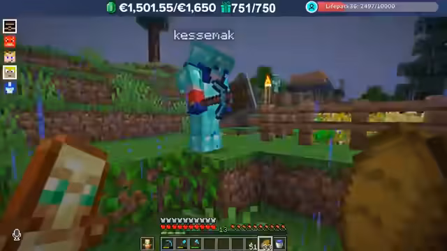 01:38:44Laufende Bauarbeiten: Flächenausbau, Trading-Hall-Besuche und Ressourcenmanagement (Holzhandel für Emeralds). Verhandlungen mit NPCs (z.B. Kamel-Kauf von 'Alfie') und Sicherheitsvorfälle (Diebstahlvorwürfe in einer Base) zeigen die dynamische Spielerinteraktion. Ein Raid auf eine Trial Chamber ist in Planung, erfordert jedoch Totems, die aktuell fehlen.