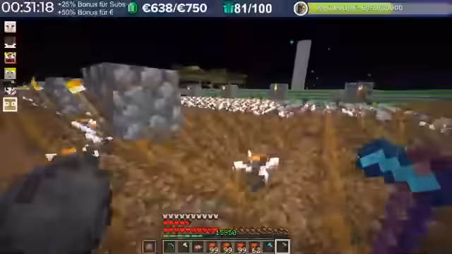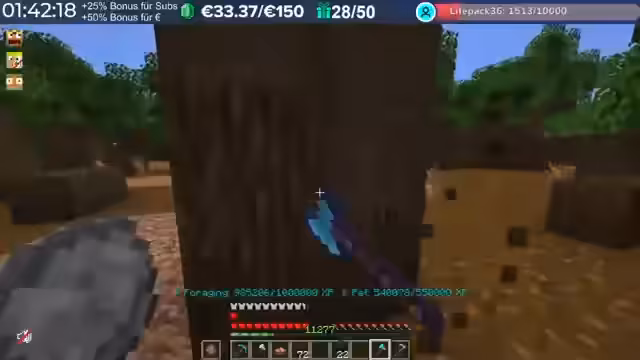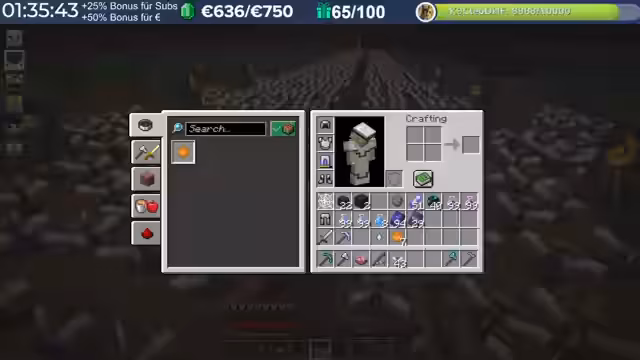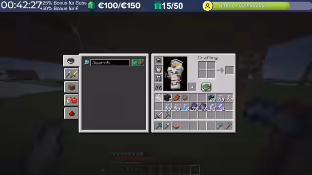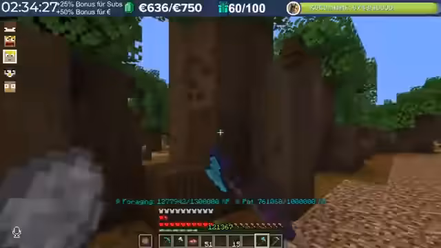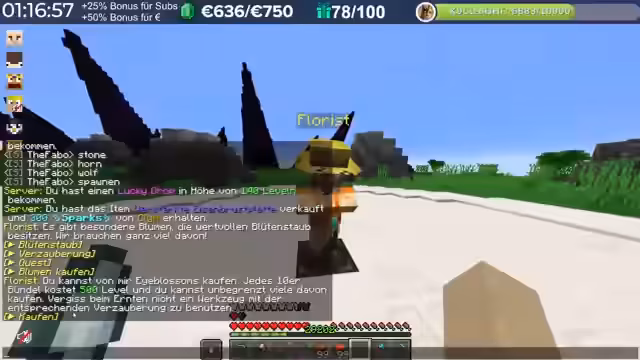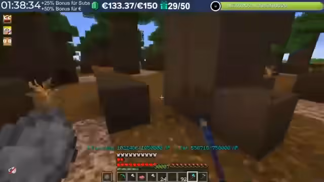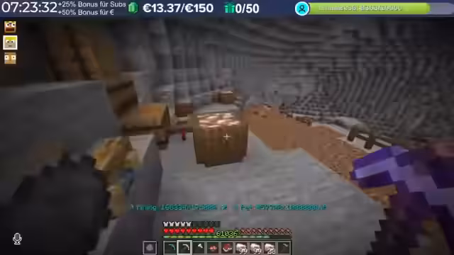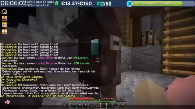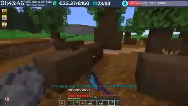 03:27:03Das Hauptaugenmerk liegt auf dem Minecraft-Spiel. Der Streamer bereitet sich auf den nächsten Villager-Trade vor und spekuliert über das angebotene Item. Er vermutet, dass es sich um ein Farming- oder Mining-Objekt handelt, das in Verbindung mit den Elementen des Servers steht. Währenddessen farmt er Ressourcen, tauscht seine Ausrüstung aus und kommentiert die aktuelle Spielsituation, einschließlich seiner Combat-Level-Entwicklung.