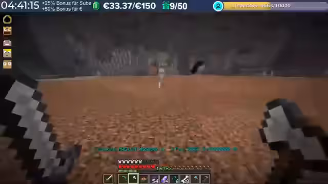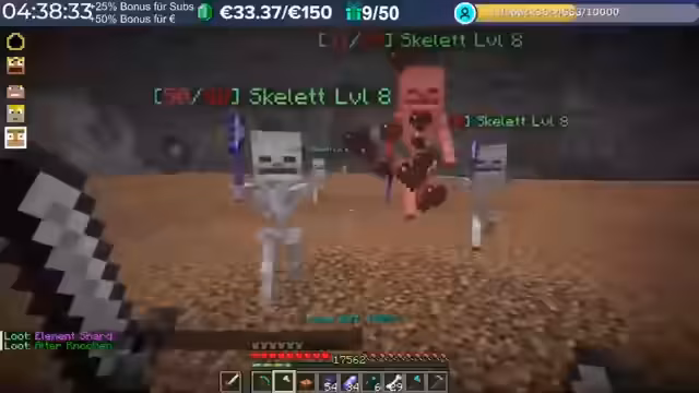 02:03:54Der Stream konzentriert sich auf das Grinden von Leveln und den Fortschritt im Dungeon. Der Spieler hat eine Stunde lang gefarmt, ohne dabei vollständig konzentriert zu sein, und ist auf Level 53.600 ohne Serverboost gestiegen. Dabei wurden Gegenstände wie eine fünfte Eisenbrustplatte und ein Dolch ge lootet, die direkt auf dem Markt verkauft werden. Der Spieler erreicht zudem Combat Level 70, was einen merklichen Schadenszuwachs bewirkt. Um die Ausgaben für Mana-Tränke zu kompensieren, wird ein Teleportstein genutzt, um nach dem Kampf Endermen zurückzukehren und Mana aufzufüllen, sodass die Farming-Aktivitäten fast im Plus abgeschlossen werden können.