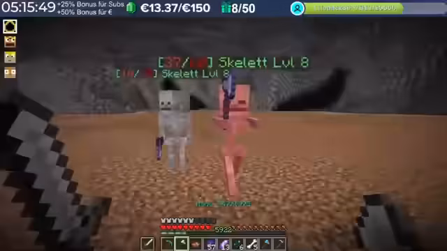 20:19:29Der Streamer erläutert die spezifischen Eigenschaften und Schwachstellen der Monster im Dungeon. Insbesondere werden die teleportierenden Endermen als schwierig eingestuft, während Skelette und Giftspinnen als besser beherrschbar beschrieben werden. Die Mechaniken des Dropsystems, wie die Berechnung der Hitbox bei Angriffen und die unterschiedlichen Effektivitäten von Waffen wie Axt und Schwert, werden ausführlich erklärt. Auch die Glitches der Spinnen an der Decke werden angesprochen.