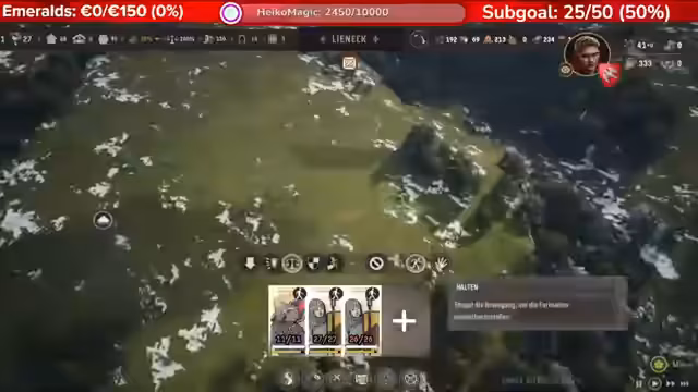 00:50:40Die Hühnerställe sind fertig und die Hühner laufen herum. Die Nahrung geht zur Neige. Der Streamer importiert Eier, um die Hungersnot zu lindern. Er baut überall Hühnerställe, damit die Familien sich selbst versorgen können. Er fragt sich, warum die Fischer nicht am Angeln sind. Er stellt fest, dass die Fischreserve noch irgendwo eingestellt ist. Er stellt die Fischreserve auf 600. Es wird analysiert, ob sich die Tiere schneller vermehren, wenn mehr davon vorhanden sind. Die Nahrung geht wieder hoch. Es wird festgestellt, dass alle Nahrungsmittel gleichwertig sind. Der Streamer schnallt, dass der Angriff bald kommt. Er kauft einen neuen Gefolgsmann. Die Milizen werden zum Einsatz bereit gemacht. Der Streamer speichert das Spiel. Er stellt fest, dass sein Gebiet kein Ackerbau unterstützt. Der Angriff steht kurz bevor. Der Streamer bereitet sich auf den Angriff vor. Er versucht, die Einheiten zu sammeln. Er stellt fest, dass es keine Banditenlager mehr gibt. Er lässt die Einheiten erst mal zerstreuen. Er analysiert den Viehbestand. Er fragt sich, wo er einstellen kann, wie viele Schafe geschlachtet werden sollen.