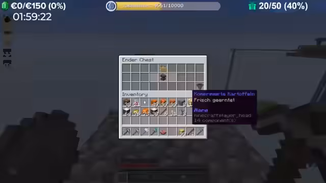 21:59:01Ein neuer Ressourcen-Spawner, der für 5000 Level bei einem Villager erworben werden kann, wird getestet. Jeder Spieler darf nur einen Spawner besitzen und aktiv nutzen, was zuvor zu einem Bann führte. Dieser Spawner kann Ressourcen, wie Harz, in einem Umkreis um sich herum generieren. Die Spawnpunkte sind zufällig verteilt und es ist wichtig, eine effiziente Methode zum Abbau der Ressourcen zu entwickeln, um Level zu erhalten.