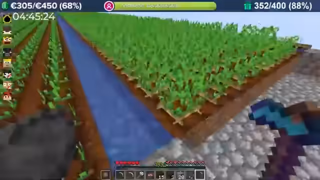 22:14:32Ein Spieler, 'Fuchsel', erleidet durch einen Unfall in Lava einen Totalverlust seiner Level und bricht daraufhin seine Farmaktivitäten ab. Dies führt zu einer Neuausrichtung der Gruppe. Die Farm wird nun weitergebaut, und es werden verschiedene Designs, wie die Verwendung von Falltüren, diskutiert, um den Ernte- und Abbauvorgang zu optimieren und angenehmer zu gestalten.