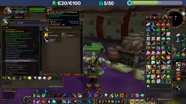 04:59:33Ziel ist das Erreichen von Level 60, aktuell bei 59. Priorität hat das Entdecken des Gebiets Winterspring und das Aufdecken von Questobjekten wie sonderbaren Quellen. Der Streamer plant, den Berg silberweißling zu entfernen, da der Inventarplatz knapp wird. Bei gefundenen Ausrüstungsstücken wird abgewogen, ob Stärke, Ausdauer oder Intelligenz für den Schaden- und Heiler-Druiden-Build vorteilhafter ist. Tränke und andere Consumables werden griffbereit gehalten, um effizient zu grinden und Quests zu bewältigen.