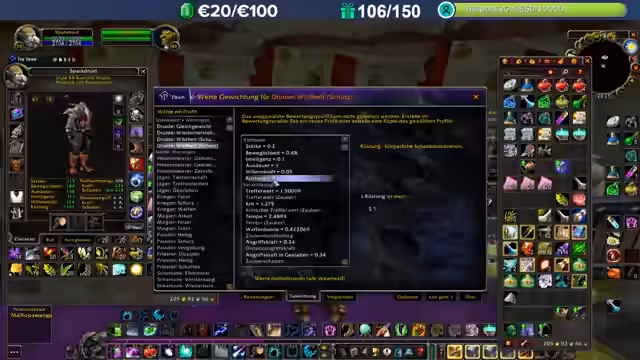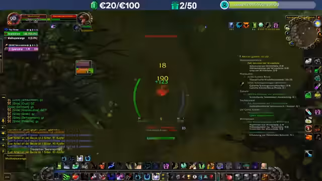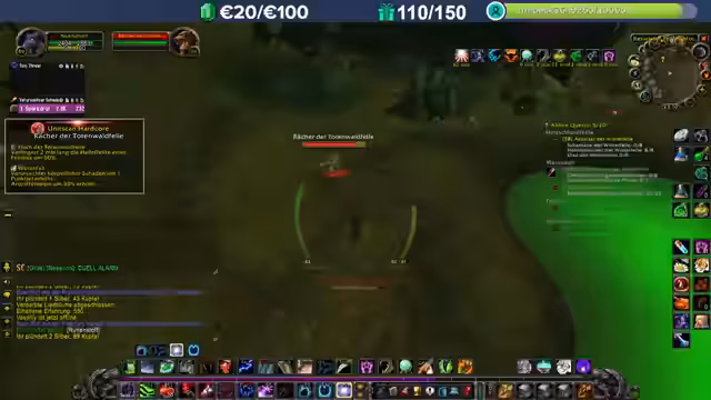 00:16:35Nach dem Abgeben einiger Questen steht das Farmen von XP und Ruf im Vordergrund. Streamer erwähnt World Buffs in Winterspring, die bis zu 42.000 XP pro Stunde bringen, und zeigt seine Ausrüstung mit Fokus auf Wiederherstellung. Mit Hilfe eines Add-ons werden Stats verbesserte Rüstungsteile identifiziert, während parallel im Teufelswald der Ruf für das Nachtvolk durch das Töten von Elites gesteigert wird.