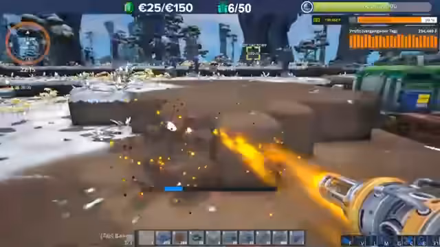 00:18:46An der Teloxid-Erzader wird der Aufzug stationiert. Es stellt sich heraus, dass der Abbau nur von der Seite möglich ist, da das Gestein von oben nicht durchdrungen werden kann. Ein Erzschürfer wird installiert, und der Streamer beginnt mit dem großflächigen Freilegen der Ader, um Platz für die Maschinen zu schaffen. Ein Laser als Abbauwerkzeug erweist sich als effektiver als der Handbohrer. Die Stromversorgung wird zunächst durch den Aufzug gewährleistet, später werden Solarmodule installiert.