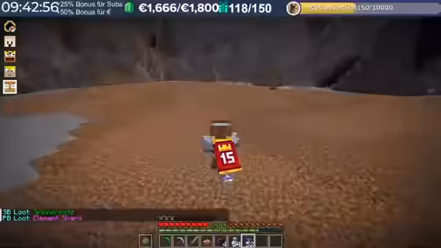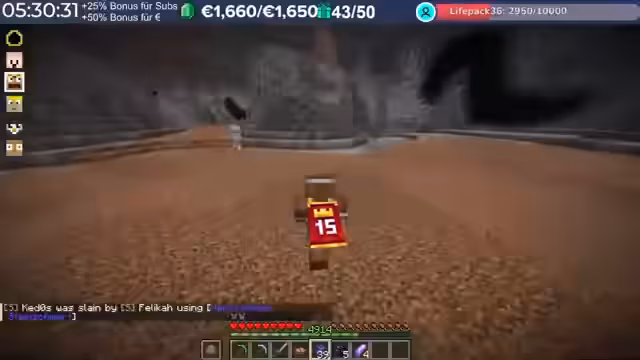 17:15:16Der Server Loot Boost wird aktiviert, was die Goldausbeute beschleunigt. Es wird überlegt, ob auch ein Player-Lead-Boost aktiviert werden soll. Die nächste Ebene im Dungeon soll Enderman oder Spinnen beinhalten, wobei Chicken Jockeys als weitere Möglichkeit genannt werden. Es wird darauf hingewiesen, dass alle Spieler anwesend sein müssen, bevor der Dungeon betreten wird. Einzelne Spieler werden in den Dungeon teleportiert. Die nächste Ebene wird als größer beschrieben, was die Entdeckung neuer Gebiete verspricht. Nach dem Betreten des Dungeons stellt sich heraus, dass er von Skeletten und Spinnen bevölkert ist, die sich als sehr gefährlich erweisen. Riesenskelette können die Spieler mit einem Schlag töten.