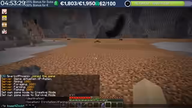 19:35:58Der Streamer erlebt wiederholt Lags und Disconnects, was das Spielen erschwert. Es wird vermutet, dass das Problem nicht direkt mit dem Stream, sondern mit dem Minecraft-Server zusammenhängt. Trotz der technischen Schwierigkeiten wird der Dungeon als Hauptpunkt des Interesses hervorgehoben. Der Streamer erwähnt das Ziel, ein Mining Speed Buch von Blizzard zu finden. Er zeigt seine 14 Teleportsteine und überlegt, wie lange die Leute mit dem Dungeon beschäftigt sein werden, schätzt aber, dass es länger dauern wird als beim letzten Mal, da der Dungeon größer ist, obwohl die Dropraten gleich sind. Der Streamer holt sich eine Levelfrucht und kehrt zurück. Er erklärt, dass es im Spiel verschiedene Aktivitäten gibt, wie Angeln in einem Fischerdorf, wo man besonderen Stuff angeln kann. Um in die Sparklands zu gelangen, benötigt man einen Teleportstein von einem Villager. Der Streamer teleportiert sich in die Hauptstadt, die er damals im Survival-Mode gebaut hat. Er zeigt verschiedene Shops und Gebäude in der Stadt. Der Dungeon selbst ist auch selbst gebaut und besteht aus mehreren Ebenen.