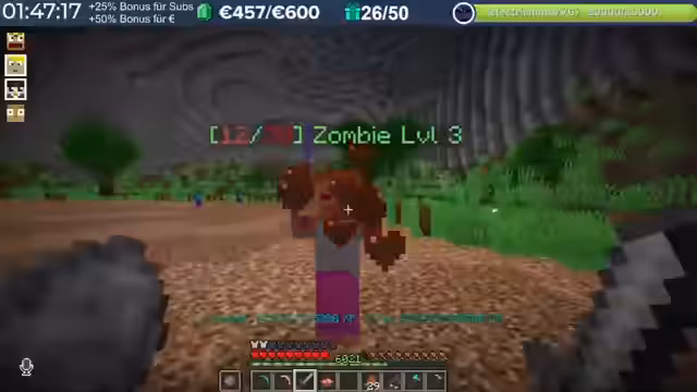 17:24:20Die Gruppe erkundet eine neue Dungeon-Ebene voller Giftspinnen und anderer gefährlicher Kreaturen. Es wird festgestellt, dass die Spinnen sehr schnell sind und Spieler mit einem Schlag töten können, wenn diese keine ausreichenden Rüstungswerte besitzen. Trotz der Herausforderungen entdecken die Spieler verschiedene Wege und Bereiche in der Mine, einschließlich solcher, die zu riesigen Zombies führen. Es wird überlegt, wie man die größeren Mobs anlocken und besiegen kann, wobei einige Spieler bereits Exploits nutzen, um sich einen Vorteil zu verschaffen. Die Map wird als sehr beeindruckend und detailliert beschrieben, aber die Spieler suchen noch nach dem Boss der Ebene. Es wird diskutiert, dass der Lootbonus genutzt werden sollte, um die Ausbeute zu maximieren, da die Skelette und Zombies verschiedene nützliche Gegenstände wie Spinnweben und Früchte fallen lassen. Die Spieler experimentieren mit verschiedenen Taktiken, um die Mobs effektiver zu farmen und die Schwierigkeiten der Dungeon-Ebene zu überwinden.