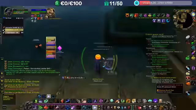 00:10:54Während auf weitere Gruppenmitglieder gewartet wird, widmet sich der Streamer der Vorbereitung von Quests und Ressourcen. Er erwähnt die Vorquests für den Tempel, darunter eine in Sturmwind, die man annehmen muss, um anschließend in Hinterland, Tanaris und Feralas sammeln zu gehen. Ziel ist es, einen Trinket zu erhalten, der bei einem Treffer 350 Rüstung für 15 Sekunden gewährt. Zusätzlich werden Alchemie-Flaschen diskutiert, für die ein seltiger Black Lotus benötigt wird. Parallel dazu wird das Sammeln von Rohstoffen wie Seide und Wolle für die Gildenbank angesprochen.