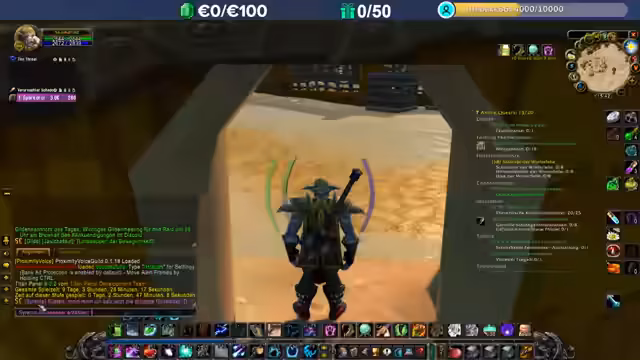 02:38:38Der Streamer plant, den Sumpf des Elends zu betreten, wird aber vor einer spezifischen Quest gewarnt. Diese 'Eine Geschichte voller Leid' könnte ihn sofort PvP-Flaggen und ihn angreifbar machen, insbesondere da dort oft Schurken lauern. Um Risiken zu minimieren, soll ein Gruppenmitglied die Quest im Voraus annehmen und direkt wieder abgeben. Gleichzeitig bereitet sich der Streamer auf den bevorstehenden Tempel-Einstieg vor, während er über das Vorhandensein von Buffs und die verbleibende Zeit spricht.