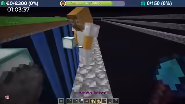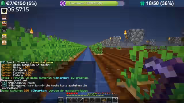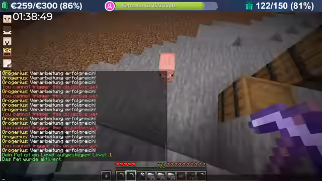 02:39:02Elina levelt sehr schnell und erreicht Farming Level 17. Sie wird darauf hingewiesen, dass sie bereits einen hohen Platz in den Highscores erreicht hat. Sie wird über das Komprimieren von Kartoffeln informiert, um später Stuff zu kaufen. Die Abstufungen der Items sind Ankommen, Rare, Epic und Legendary. Pets sind Legendary. Elina erhält 200 Sparks für den Verkauf eines Schnitzels. Es wird erklärt, wie die Dimensionsreise funktioniert, indem man die Glasscheiben für die gewünschte Dimension auswählt und die Enderperle benutzt. Der Netherstar bringt einen zurück zum Hub. Es wird gefragt, ob man zum Ocean teleportieren kann. Im Ocean gibt es Unterwasseratmung, sodass man nicht ertrinkt. Logo und andere haben dort verschiedene Räume gebaut. Es ist ein bisschen schwieriger am Anfang. Es wird empfohlen, sich auszuruchen, wo es am besten passt.