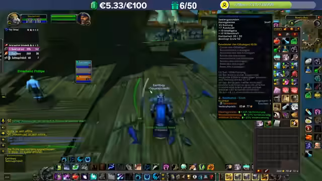 02:50:49Der Streamer bereist Booty Bay, um dort Quests zu erledigen und seine Ausrüstung zu optimieren. Er fliegt nach Ratchet und nimmt den Boot nach Booty Bay in Anspruch. Unterwegs wird seine Ausrüstung analysiert, wobei eine spezielle Heiler-Ausrüstung diskutiert wird. Ein Item, das zu zerstören ist, wird mit einem Gürtel verglichen, der zwar einen besseren Zauber-Treffer-Chance bietet, aber für einen Heiler irrelevant ist, da dieser immer trifft.