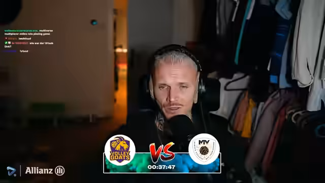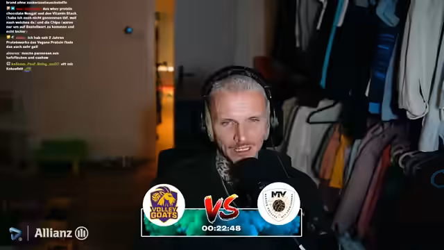 00:40:35Der Streamer korrigiert technische Overlays, die fehlten, und startet eine Aktion im Discord, bei der Memes gepostet werden können. Für jeden Lacher, den der Streamer bekommt, wird eine Kiste Bier verlost. Am Abend wird der Karnevalsspieltag der Eintracht in Düsseldorf angekündigt. Das Spiel zwischen den Volleygoats und Ludwigsburg beginnt. Die Aufstellungen werden vorgestellt und ein umstrittener Punkt des Goats-Angreifers Omehne wird durch eine Challenge korrigiert, was zu einem lauten Protest des Gegners führt. Ludwigsburg führt nach der ersten Aufschlagrunde.