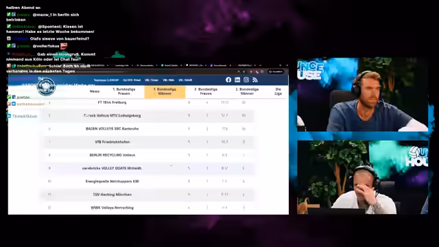 00:43:11Der Stream widmet sich auch den aktuellen Volleyball-Spielen. Es wird über die 'Schlacht der Bayern' zwischen Dachau und Haching berichtet, die einen Marathon-Satz spielten. Zudem wird die knappe Pokal-Achtelfinal-Niederlage von Freiburg gegen Human Essen thematisiert, wobei Human Essen starke Leistungen zeigte, insbesondere durch den Spieler Prions, der als potenzieller Erstliga-Spieler eingeschätzt wird. Für das anstehende Topspiel zwischen Berlin und Lüneburg werden die Aufstellungen analysiert. Bei Berlin spielt Flexen, was gut für das Bingo ist, zusammen mit Moritz Reichert. Ruben Schott schmort auf der Bank, während Mote und Knigge die Hauptrollen spielen. Bei Lüneburg wird der Spieler Ho als vielversprechender Mittelblocker hervorgehoben, den man im Auge behalten sollte. Der Moderator gibt zu, Lüneburg in dieser Saison bisher wenig verfolgt zu haben, erwähnt aber, dass der Spieler Bayern sehr gut gestartet ist und der andere Diagonalspieler Groveos statistisch gesehen viele Fehler macht und ineffizient angreift. Das Bingo-Spiel wird kurz unterbrochen, um die 10 Gifted Subs zu feiern.