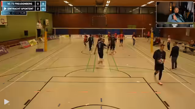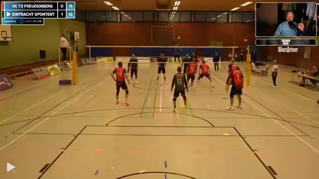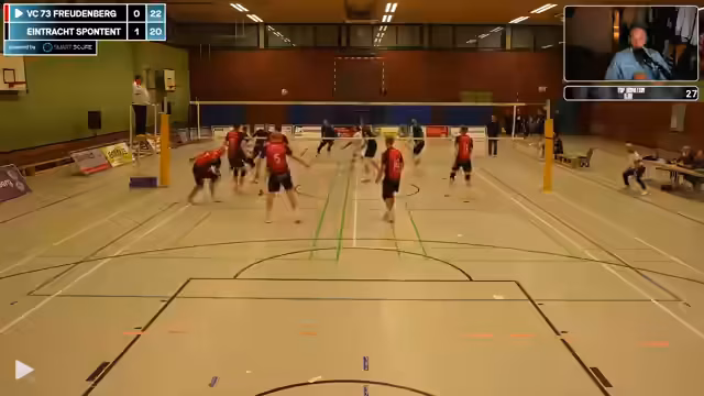 00:12:10Das Spiel beginnt, die Eintracht hat mit technischen Problemen zu kämpfen, ein Score zeigt Spoiler und verzögert sich. Im Spiel selbst tritt die Eintracht schwach auf, verliert viele Bälle und wirkt nicht vorbereitet. Der Zuspieler Schnippo macht Fehler, und die Abwehr ist unorganisiert. Gegen einen aufstrebenden Gegner wie Freudenberg gerät die Eintracht früh in Rückstand und zeigt mangelnde Disziplin im Spielverlauf.