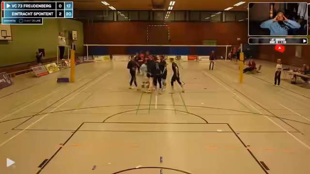 00:00:07Eintracht Spontent befindet sich im Auswärtsspiel bei VC73 Freudenberg, einem Duell der Spitzenmannschaften. Der Stream gestaltet sich technisch sehr anspruchsvoll: Die Kamera ist schief, keine Mikrofone sind verfügbar, da die gesamte Profitechnik beim Liga Cup im Einsatz ist. Der Streamer ist froh, überhaupt ein Bild zu liefern und versucht, die Kamera manuell zu justieren. Zudem fehlen Schlüsselspieler wie Daniele Montiano und Janik Schiller, und der Kader ist angeschlagen, was die bereits schwierige Lage zusätzlich erschwert.