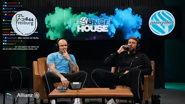 00:43:15Die Moderatoren reflektieren die typische Freitagabend-Stimmung, in der viele Zuschauer Bier trinken und ausgehen, was für sie selbst aufgrund ihres Lebensstils unrealistisch ist. Ein Freund des Moderators hat gute Karten für das Fußballspiel Leverkusen gegen Dortmund am nächsten Abend, was die Diskussion über Live-Sport-Erlebnisse anheizt. Die Möglichkeit, ein Spiel in einer Loge zu verfolgen, wird erwähnt, wobei die Schwierigkeit, dort auf Alkohol verzichten zu müssen, bedauert wird. Es wird überlegt, ob man nicht selbst öfter zu Sportveranstaltungen wie Fortuna-Spielen oder DEG-Eishockey gehen sollte, um die Atmosphäre zu genießen. Die Idee, ein Public Viewing im Bounce House zu veranstalten, wird ebenfalls angesprochen, wobei die logistischen Herausforderungen wie Ticketing oder Anmeldung diskutiert werden. Es wird auch über die Möglichkeit gesprochen, die FIFA-Karten-Analogie für Volleyballspieler in ein Fantasy-Spiel zu integrieren.