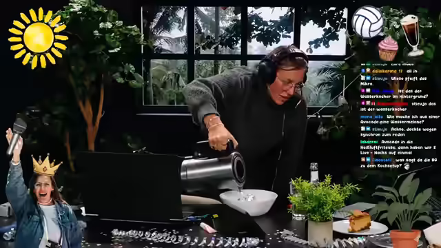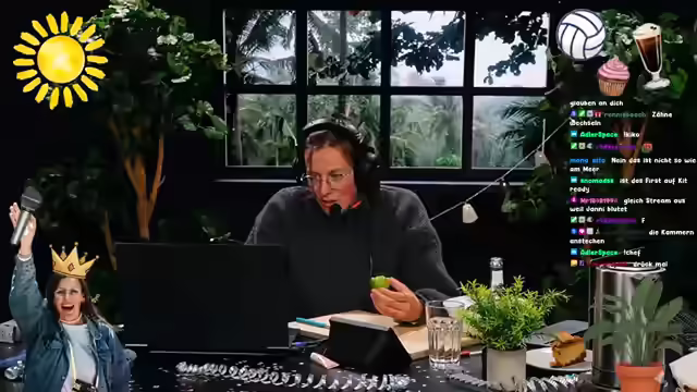 00:55:12Es wird diskutiert, warum nicht am Damenspiel teilgenommen wird, wobei der Fokus auf die Trennung von Job und Privatleben gelegt wird. Ein Avocado-Experiment wird gestartet, um zu testen, ob eine unreife Avocado durch Kochen genießbar gemacht werden kann. Das Ergebnis ist jedoch enttäuschend, da die Avocado hart bleibt und nicht schmeckt. Der Lifehack scheitert, und es wird festgestellt, dass man besser eine reife Avocado kaufen sollte. Trotz des Misserfolgs wird der Versuch positiv aufgenommen. Abschließend werden Lifehacks gesucht, die im Stream getestet werden können. Es wird über die größte Stärke gesprochen, die im Finden von positiven Aspekten in jeder Situation gesehen wird. Es folgt der Übergang zu einer neuen Kategorie, die als Familienupdate im Beachvolleyball-Stil angekündigt wird, um auch Zuschauer anzusprechen, die sich nicht für Beachvolleyball interessieren. Die Kategorie soll interaktiv gestaltet sein.