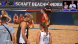 07:42:16Im Live-Kommentar wird die taktische Wurfweise der Spieler analysiert, insbesondere bei Würfen im Sand, die durch die Piourette-Drehung erschwert werden. Die Kommentatoren erläutern, dass es im Beach Handball wichtig ist, dem Schützer Tempo zu nehmen und dass Abwehrspieler wie Lennart Liebeck trotz Abwesenheit im Kader aufgrund ihrer defensiven Stärken einen wertvollen Option darstellen, besonders bei Personalsorgen im Abwehrbereich.