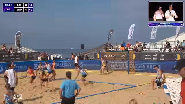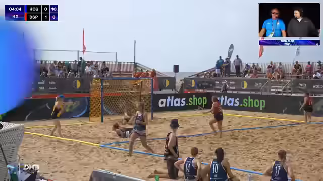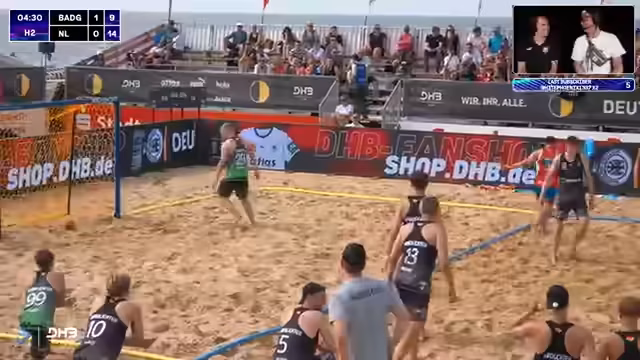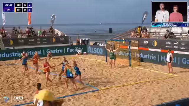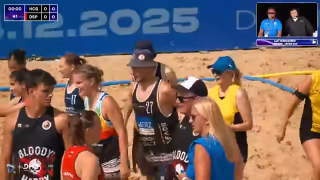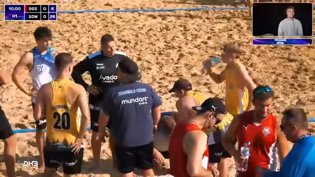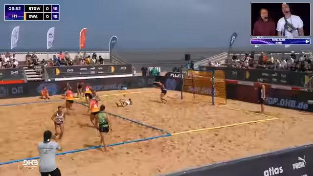 06:03:49Das Spiel zwischen den Sand Devils und den Beach Tigers wird kommentiert. Es ist eindeutig, dass die Devils der klare Favorit sind, jedoch wird betont, dass in Beachhandball alles möglich ist. Die Devils müssen auf mehrere Ausfälle im Team reagieren, während die Tigers nach einer knappen Niederlage im Shootout gegen Schurwald einen Sieg benötigen. Das Spiel selbst wird als sehr torreich und intensiv beschrieben.
