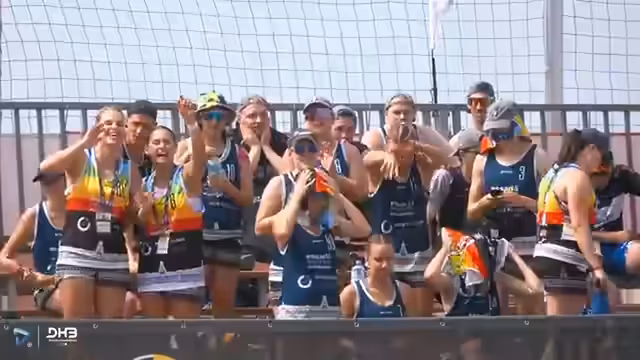 10:29:53In der Gruppe B der Frauen kommt es zum letzten Gruppenspiel zwischen den Sand Devils und den Beach Bazis. Beide Teams haben bereits vier Punkte, das Spiel ist jedoch für die Platzierung und damit für die Viertelfinal-Gegner von entscheidender Bedeutung. Kommentatoren wie Bundestrainer Alex Nowakowitsch und Kommentator Kai Bierbaum (Trainer der Devils) analysieren die junge, talentierte Besetzung der Devils, während die Bazis durch Nationalspielerinnen wie Isabel Kattner und Belén Gettward eine starke Qualitätssteigerung zeigen.