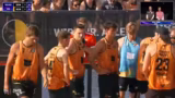 02:05:11Die Beachmopeten zeigen eine verbesshte Leistung im zweiten Satz und werden effektiver. Die Verteidigung wird umgestellt, um mehr Druck aufzubauen. Trotzdem bleibt das Spiel ausgeglichen und es kommt zu einem Shootout. Kommentatoren erklären die Prinzipien des Shootouts, bei dem ein Spieler mit einem Spin-Shot zwei Punkte erzielen kann, während der Torwart eine Entscheidung treffen muss. Die Shootout-Regel wird als spannender Elfmeter-ähnlicher Endkampf des Spiels beschrieben.