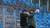 03:45:31Die Kommentatoren sprachen über die Blockposition von Jonas und eine sinnlose Challenge. Sie bemängelten, dass sich die Stadion-Crew zu langsam bewegte und Regie und Kamera nicht sofort auf die Auszeit reagierten. Es folgte eine Auseinandersetzung mit einem 'grünen Profi' und einem Kameramann, der völlig versagt haben soll. Der Kommentator beschrieb die Situation als 'links liegen lassen' und lobte stattdessen die Chuck-Cam, die während der Auszeit stattfand, als '10 von 10'.