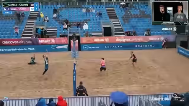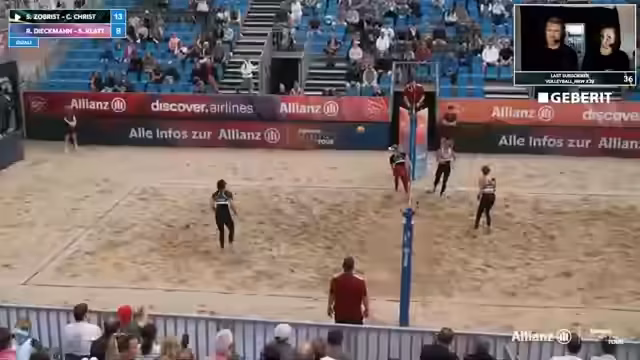 01:08:22Beim Spiel von Rika und Steffi gegen Genoa wird der knappe Spielstand von 9-9 im dritten Satz erwähnt, was die Spannung unterstreicht. Parallel dazu wird eine potenzielle Neuerung im Ticketing-Modell der German Beach Tour für das kommende Jahr diskutiert. Es gibt die Überlegung, neben dem 25-Euro-Ticket ein freiwilliges 30-Euro-Ticket einzuführen, von dem 5 Euro direkt in das Preisgeld fließen würden, um so zusätzliche Mittel für die Spieler zu generieren. Es wird eine Umfrage im Chat gestartet, um die Akzeptanz dieser Idee zu testen.