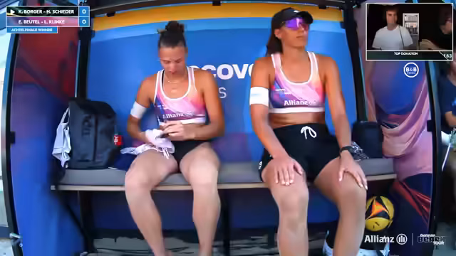 06:33:54Das nächste Spiel ist ein Ausscheidungsspiel bei den Damen zwischen Anna Behlen/Sarah Schulz und Elea Beutel/Leo Klinke. Beide Teams haben in der Vergangenheit eng Spiele geliefert, obwohl Anna und Sarah als underdog galten. Elea und Leo haben Rückenwind von vorherigen Siegen, während Anna und Sarah ihr erstes Spiel verloren haben.