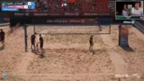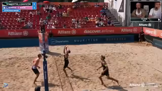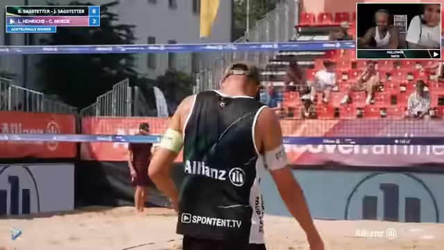 04:34:25Luis Hendricks und Cedric Möde spielen gegen die Sargstetter-Brüder. Hendricks zeigt beeindruckende Abwehrleistungen mit mehreren Plus-Punkten in der Defensive. Cedric Möde hat anfangs Probleme, kann sich aber fangen. Die Kommentatoren loben Hendricks' Athletismus und Verteidigungsfähigkeiten. Das Spiel ist ausgeglichen und geht in die Verlängerung. Für die Sargstetter-Brüder stellt sich die Frage, wie sie mit dem Druck umgehen, da sie bereits mehrere Bälle gegen sich hatten. Die Fans scheinen für das Underdog-Team Henrichs-Möde zu stimmen.
