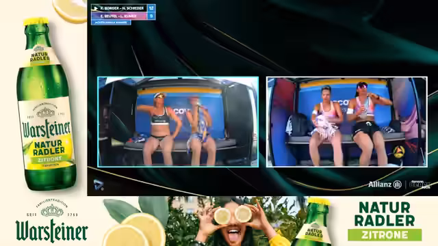 02:23:48Nach dem Sieg für Melli und Nele gibt es Erleichterung, insbesondere durch die Vermeidung eines weiteren Spiels in der prallen Hitze. Das Interview mit den Siegerinnen thematisiert die ungewöhnliche Uhrzeit des Spiels und die Vorbereitung. Melli Gernard und Nele Barber erklären, dass sie speziell in der Mittagshitze trainiert haben, um sich an die Bedingungen zu gewöhnen. Sie äußern sich über die besondere Bedeutung des Heimturniers in Berlin.