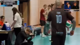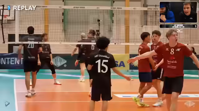 00:18:20Im ersten Satz entwickelt sich ein enges Kopf-an-Kopf-Rennen zwischen den Teams. Der Kommentator beobachtet das Spielverhalten der Spieler, insbesondere von Dirk Funk, der viele Punkte erzielt, und Till, der als solider Spieler ohne große Fehler auffällt. Eine private Wette über die Anzahl der Punkte von Martin Lobbe im ersten Satz wird im Chat angestoßen und sorgt für zusätzliche Spannung. Am Ende des Satzes wird Martin Lobbe zum Matchwinner, als er den entscheidenden Punkt mit einem spektakulären Faustschlag zum 15:9 macht und damit die Wette für die Kommentatoren gewinnt.