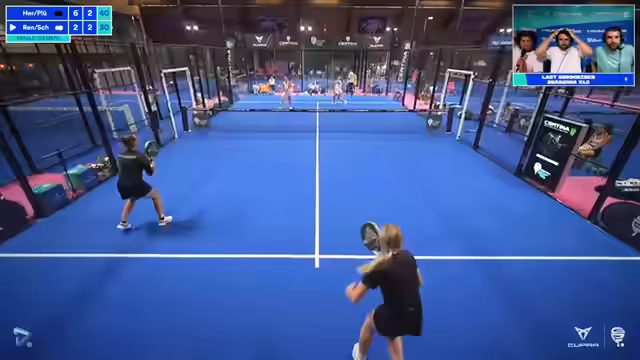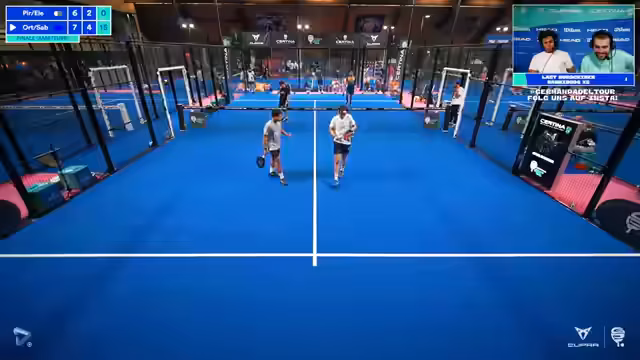04:49:30Der Stream beginnt mit einer Diskussion über Fußballer, die eigene Padelplätze haben, und einer Analyse des aktuellen Spiels. Benni und Patrick führen mit 40-0, während Argus und Guillaume stabil verteidigen. Der Kommentator hebt die taktische Stärke der Spieler hervor und erwähnt die Herausforderung, gegen ihre Defensive zu bestehen. Das Spiel ist geprägt von präzisen Schlägen und taktischen Manövern, wobei die Aufschläge eine entscheidende Rolle spielen.