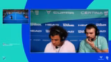 02:29:58Kata und Lena gelingt nach einem dramatischen Spiel mit mehreren Breaks und Ballwechseln hochklassiger Qualität der Einzug ins Finale. Sie können die Revanche für die Niederlage in Berlin perfekt machen. Im Interview nach dem Match sprechen die Siegerinnen über ihre Strategie, sich aggressiver präsentiert zu haben als in Berlin, und über ihre Freude über den Finaleinzug. Lena wird für ihre beeindruckende Entwicklung seit Bochum gelobt. Die Verlosung eines Hoodies wird durchgeführt und der Gewinner bekannt gegeben. Die Siegerinnen freuen sich auf das Finale und die Herausforderung.