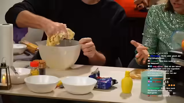 00:30:08Das Kneten des Teigs erweist sich als chaotisch und humorvoll. Einer der Streamer beklagt sich, dass er eigentlich zum Kekseessen gekommen sei und nun arbeiten und sich die Hände schmutzig machen müsse. Die Konsistenz des Teigs wird weiterhin diskutiert, wobei immer mehr Mehl hinzugefügt wird, um ihn fester zu machen. Es werden lustige Bäckergeräusche imitiert und über die mangelnde Qualifikation für einen Back-Stream gescherzt. Die Zuschauer werden gefragt, ob sie schon einmal Kekse gebacken haben, um ihre eigenen Erfahrungen zu teilen. Der Stream bleibt trotz der kleinen Schwierigkeiten unterhaltsam und interaktiv.