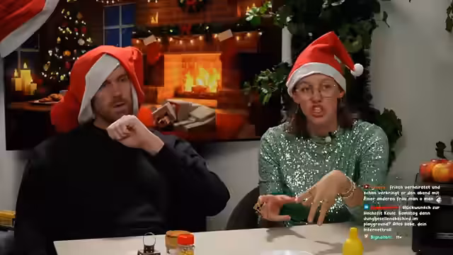 00:54:39Die Weihnachtsplanung wird thematisiert, wobei Janni und Tjana am 23. Dezember zu Tjanas Familie nach Rothenburg fahren und bis zum 25. oder 26. bleiben. Am 27. Dezember muss Janni wieder zurück sein, da ein Bouncehaus-Event stattfindet, das möglicherweise ein Freiburg-Spiel beinhaltet. Es wird über ein gemeinsames Buffet mit dem Chat gesprochen, bei dem jeder etwas mitbringt. Die Frage nach einem Co-Kommentator für ein Spiel am 27. wird aufgeworfen, wobei Louis als potenzieller Partner genannt wird, der im Playground trainiert und möglicherweise bleiben wird. Die Diskussion wechselt zu Weihnachtstraditionen beim Essen, wobei Raclette als klassisches Heiligabendessen in Jannis Familie genannt wird, das für seine entspannende Wirkung geschätzt wird. Die Definition von Freundschaft und die Anzahl der engen Freunde werden erörtert, wobei Janni viele Freunde hat, auch wenn sie diese nicht immer regelmäßig sieht, aber weiß, dass sie sich im Notfall auf sie verlassen kann. Alex hingegen hat eine kleinere Anzahl von engen Freunden.