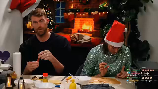 00:40:02Nachdem der Teig endlich die richtige Konsistenz erreicht hat, beginnt der kreative Teil des Backens. Die Streamer nutzen verschiedene Ausstecher, um die Plätzchen in Form zu bringen. Dabei wird auch über alternative Verwendungen des Streams gesprochen, z.B. das Backen von Pizza auf einer Tribüne. Die Atmosphäre ist entspannt, und trotz der anfänglichen Schwierigkeiten ist das Ergebnis das gemeinsame Back-Erlebnis.