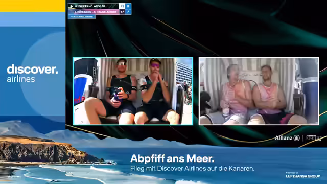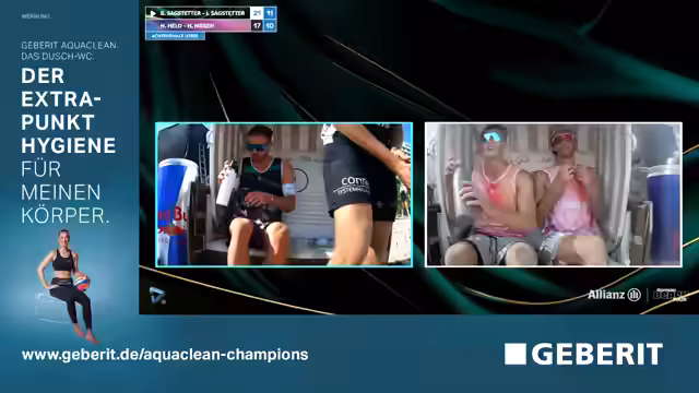 01:06:00Nach der langen Pause aufgrund der Challenge bleiben die Saggis fokussiert und machen direkt ihre beiden Breaks. Sie gewinnen den Satz und damit das Match 2:0. Held/Nissen müssen sich mit Platz 7 zufrieden geben. Im anschließenden Interview freuen sich Jonas Sackstetter und Benni Sagstetter über den Einzug ins Viertelfinale. Sie loben die faire Schiedsrichterentscheidung nach der unglücklichen Punktssituation und betonen die besondere Herausforderung gegen ein langjähriges Trainingspartner-Team.