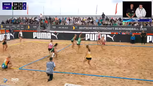 06:02:03Aus Gangsicht dürfen die sich jetzt gerade maximal null Fehler offensiv erlauben. vor allem man kennt auch die Monkeys und man weiß, was da kommt. kommt auch nochmal Martin Wilsrub in seiner Erfahrung als Spezialist rein. Und du weißt, er wird gute Entscheidungen treffen. Und da ist jetzt wirklich jede Aktion entscheidend. Gerade auch in der Phase des ersten Satzes. und Finn macht da jetzt eine ganz klare Ansage, weil da wollte Bambi nix weiter als um den Kontakt. stark gehalten, aber eines der schwierigsten Manöver, die du fahren kannst im Beach Handball. Dieses Coast to Coast von der Seite zur anderen Seite als Camper. Du brauchst viel Timing, Geschwindigkeit, Höhe. es gibt kaum einen schwierigeren. Außer als Rechtshandler mit der Piro von rechts, wie man gerade sieht.