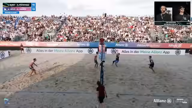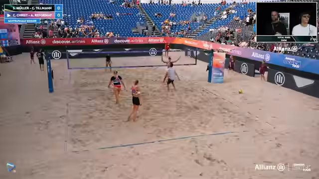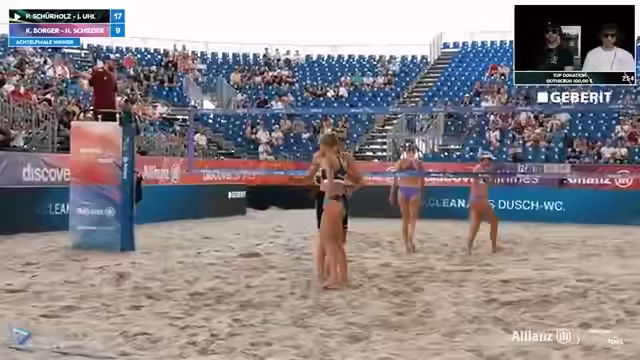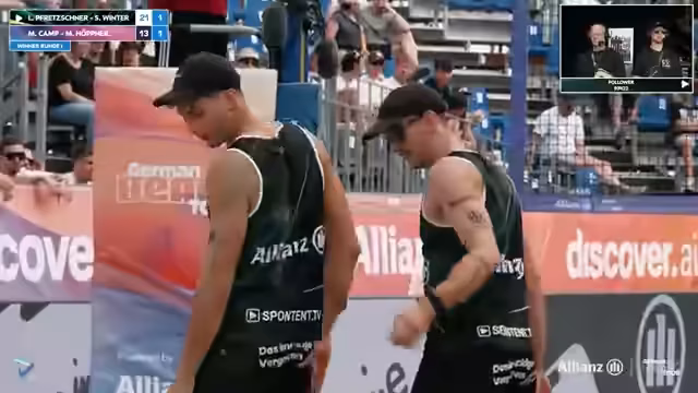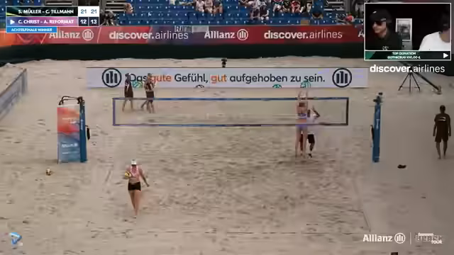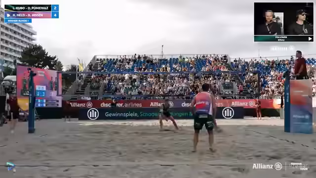 00:00:00Der LiveStream beginnt mit einer Begrüßung zur Deutschen Beachvolleyball Meisterschaft in Timmendorf. Zunächst werden die erfolgreichen ersten Runden, insbesondere auf den Sidecourts, erwähnt. Im Anschluss folgt eine Analyse eines Spiels, bei dem das Team Sova/Reinhardt zwar eine frühe Führung verspielte, den Satz aber letztendlich doch gewann. Streamer heben die physische Präsenz beider Teams hervor, wobei sie für sich beanspruchen, auch als großes Team gegen andere physische Konkurrenten bestehen zu können.