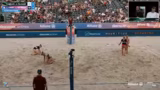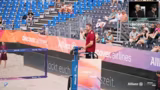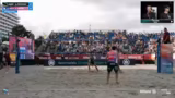 01:57:12Die Kommentatoren analysieren das Spiel der Männer und blicken dann auf das anstehende Damen-Duell zwischen Müller/Tillmann und Christ/Reformat. Es wird thematisiert, dass Sinja Tillmann mit einer Schulterverletzung spielt, was ihre Aufschlagstärke mindert. Dennoch gelten sie als Favoriten, da ihre Block-Defense immer noch als Hammer gilt. Die Gegnerinnen, Chenoa Christ und Anna Chiara Reformat, haben heute Morgen für eine Überraschung gesorgt.