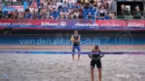 02:14:11Das Damen-Duell zwischen Müller/Tillmann und Christ/Reformat beginnt. Die Kommentatoren stellen die Teams vor. Müller/Tillmann sind als Top-Favoritinnen und Titelverteidigerinnen. Sinja Tillmann wird als lebende Legende mit sieben Medaillen in 16 Teilnahmen vorgestellt. Ihre Partnerin Svenja Müller ist ein Juwel im Block. Die Herausforderinnen Christ/Reformat haben mit einem Sieg gegen Behlen-Schulz für eine Überraschung gesorgt und sind ihr erstes gemeinsames Turnier.