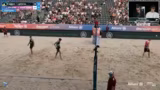 05:42:14Das Spiel beginnt ausgeglichen, wobei Beutel/Klinke stark in das Match starten. Die Kommentatoren analysieren die Spielzüge und die Teamdynamik. Sie loben die technische Qualität von Leo Klinke und den Lauf von Anna Grüne/Sandra Ittlinger, während sie bei Beutel/Klinke feststellen, dass sie in der Saison oft um die Qualifikation kämpfen mussten. Beutel/Klinke präsentieren sich zwar defensiv stark, aber nach und nach gewinnen Grüne/Ittlinger die Oberhand durch eine bessere Spielaufbau und weniger direkte Fehler.
