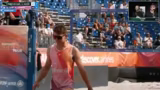 00:13:51Nach dem starken Start der Young Guns gleichen Kühlborn/Stadie durch eine verbesshrte Teamleistung und den starken Side-Out von Erik Stadie aus. Das Spiel bleibt bis zum Ende des Satzes extrem umkämpft. Yannick Kühlborn legt ein absolut herausragendes Blockfestival hin und ist der überragende Spieler im Satz. Das Team um den König gewinnt den ersten Satz letztendlich knapp und drückt damit den Young Guns die erste Niederlage auf.