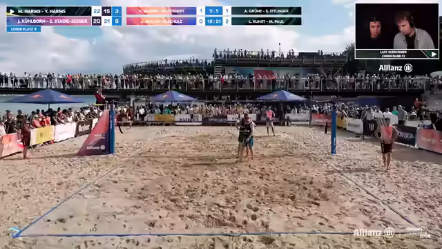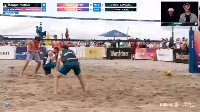 02:06:54Der Stream verzeichnet Rekordzuschauerzahlen für das Turnierwochenende auf Court 2, was als Zeichen für das wachsende Interesse am Beachvolleyball gewertet wird. Während des Spiels gibt es mehrere Fehler von Clemens Wickler, die von den Kommentatoren als untypisch für ihn beschrieben werden. Es folgt eine Diskussion über potenzielle Spielabbrüche wegen Dunkelheit, die jedoch nicht umgesetzt werden. Der Fokus liegt auf der Leistung von Kim Huber, der in einem Drückduell gegen Nils Ehlers überraschend Punkte erzielt, was als Highlight gewürdigt wird.
