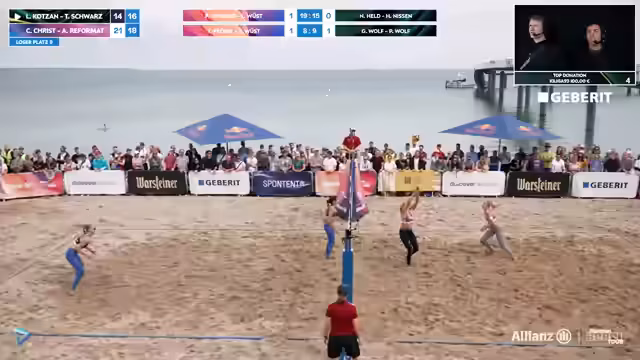 03:10:26Eine Chance auf einen Führungsvorteil von drei Punkten wurde nicht genutzt, was die Spannung im Spiel hielt. Unmittelbar darauf gab es eine zweite Challenge, die jedoch ebenfalls nicht erfolgreich war. Die Spielführung blieb ausgeglichen und der Ballwechsel war auf Tuchfühlung. Janik Harms zeigte sich wiederholt konzentriert, auch wenn er parallel den dritten Court beobachten musste. Lea Kunz schlug in dieser Phase viele Asse, was die Situation komplex gestaltete. Die Anfragen im Chat und die internen Diskussionen drehten sich um die genauen Regeln und Abläufe am Netz.